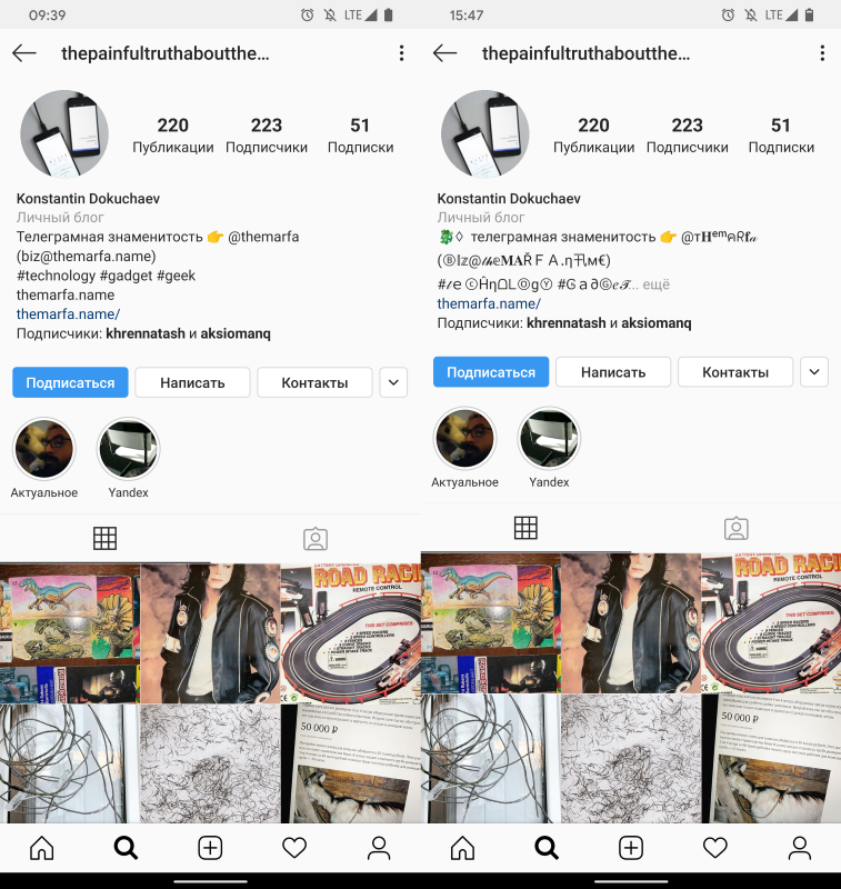 - Fonts for Instagram (поменять шрифт в профиле Instagram)