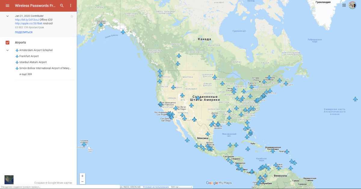 WiFox - приложение для Android, iOS и пользовательская Google Карта, на которой люди делятся паролями Wi-Fi в аэропортах мира.