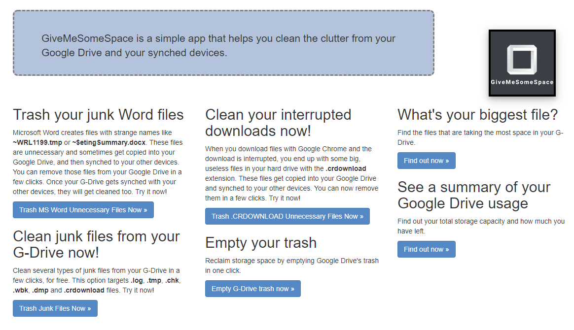 GiveMeSomeSpace поможет расчистить место в Google Drive.