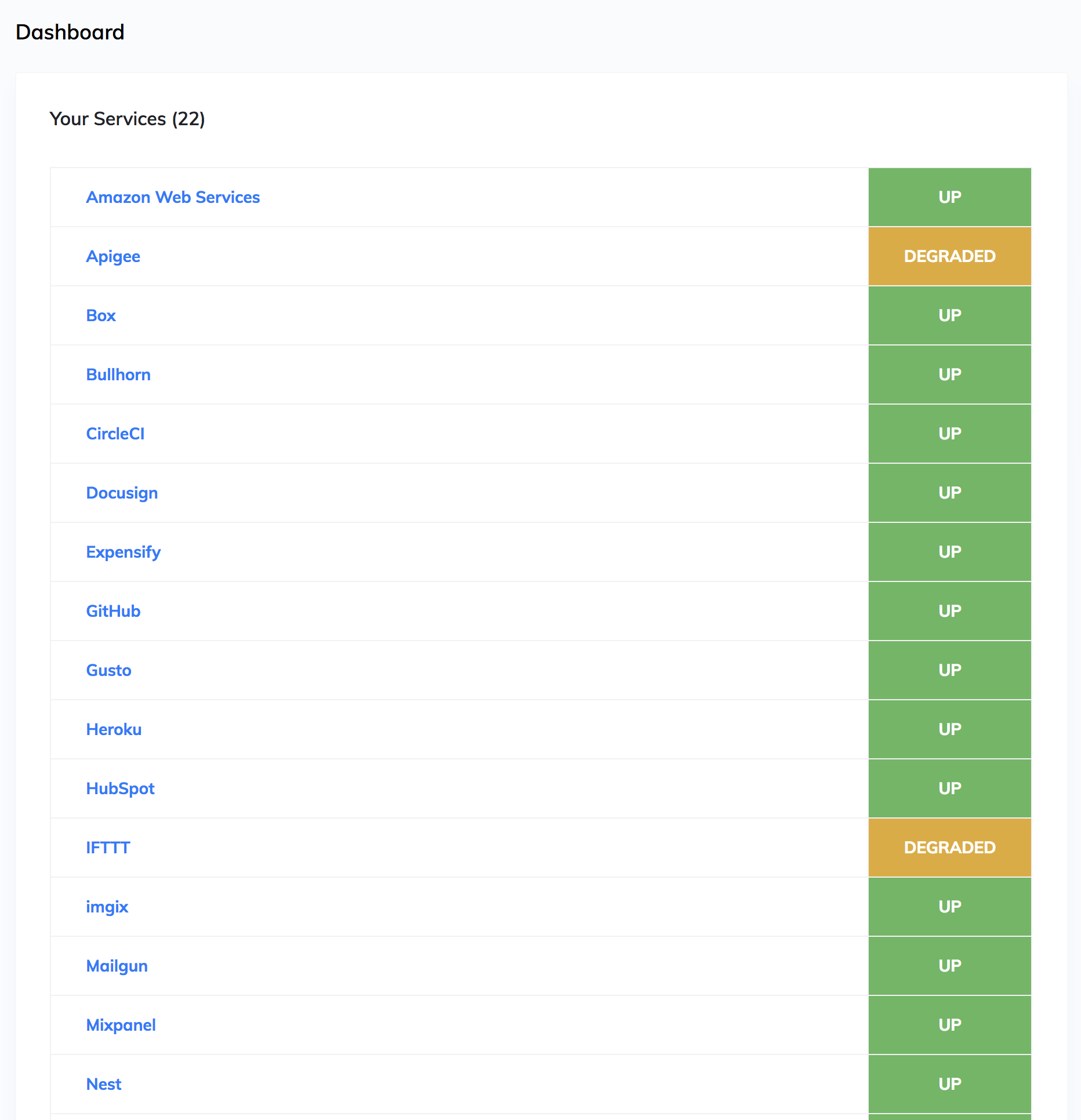 StatusNotify — вебсервис для мониторинга работы 300 популярных облачных сервисов. Теперь можно получать оповещения в реальном времени при даунтайме, отслеживать это все в дашборде и вообще жить спокойнее.