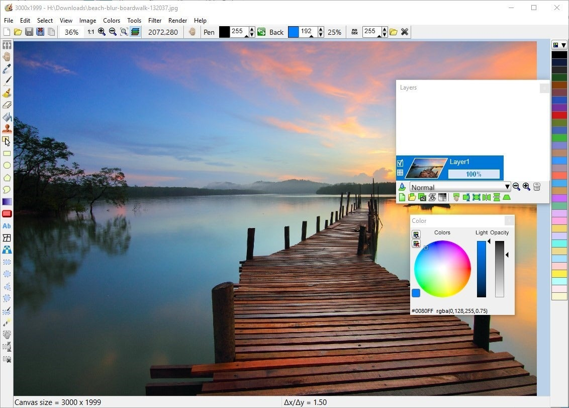 LazPaint — это редактор растровой графики с открытым исходным кодом, который доступен на нескольких платформах (Windows, macOS и Linux). Я бы не назвал его альтернативой Photoshop (на мой взгляд, ничего подобного), или даже заменой GIMP, поскольку это не векторный редактор. LazPaint предназначен для замены Paint.net, PaintBrush и аналогичных программ.