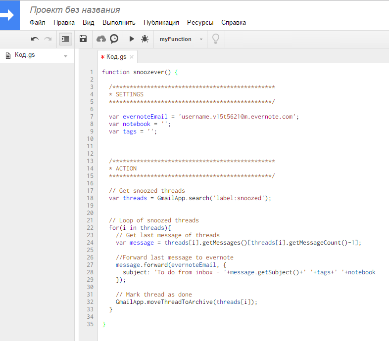 Слово «утилита» я не случайно взял в кавычки, так как это просто скрипт, который не требует никакой установки. После настройки скрипта Snoozever все отложенные письма в Google Inbox будут автоматически сохраняться в Evernote.