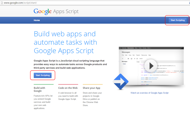 После перейдите на сайт Google Apps Script. На нём кликните по Start Scripting: