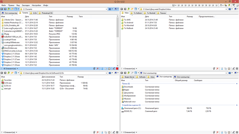 Q-Dir - прекрасная и легкая замена стандартного Проводника Windows. Все папки всегда у вас под рукой.