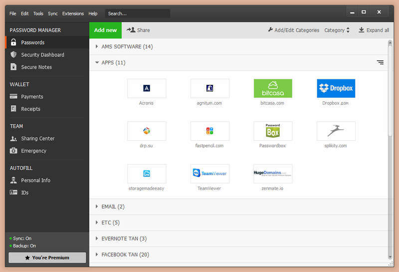 Для хранения паролей я использую Dashlane. Синхронизация между устройствами, версии под все платформы и множество функций.