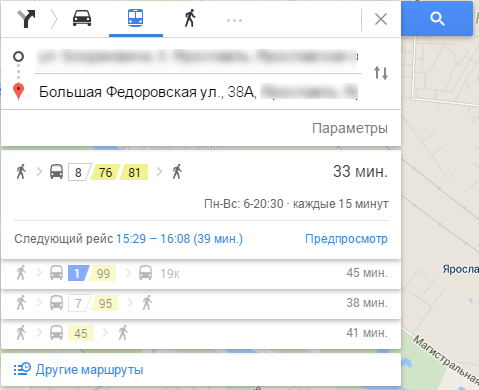 Для навигации по городу я использую Google Maps. Для меня огромным преимуществом является то, что они позволяют точно рассчитать время в пути. Это очень удобно, когда тебе нужно добраться в незнакомое место. Или посмотреть во сколько выйти из дома чтобы придти к приезду маршрутки.
