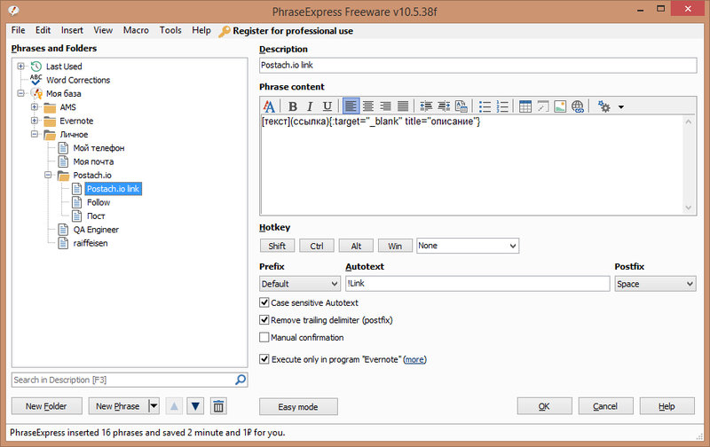 Как отличный помощник в автонаборе текста себя показала программа PhraseExpress. Она позволяет автоматизировать набор практически любых текстов. Есть так же мобильные приложения.