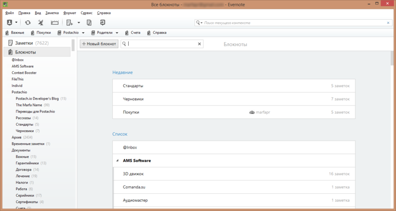 Evernote не очень подходит к этому разделу, но я все же включу эту программу сюда. Я использую Evernote для хранения любой информации, которая не попадает в Dropbox или Zoolz.