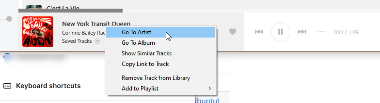 При прослушивании трека можно перейти к исполнителю, альбому, воспроизвести похожие треки, скопировать ссылку, добавить его в плейлист.
