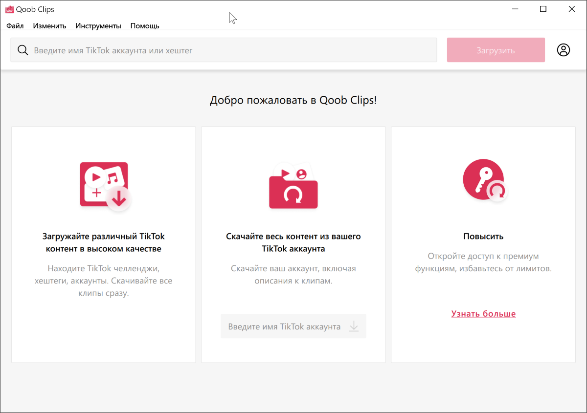 Qoob Clips — приложение для Windows и macOS, которое поможет просматривать и скачивать клипы и музыку из публичных и закрытых аккаунтов TikTok, делать резервную копию вашего аккаунта, мониторить чужие аккаунты.