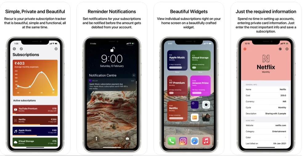 Recur — трекер подписок на различные сервисы чтобы не забыть вовремя внести оплату.
