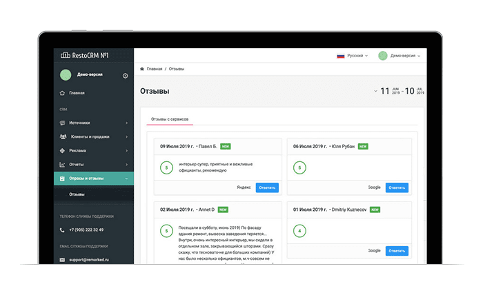 Система автоматически собирает отзывы с 20+ платформ, включая социальные сети и агрегаторы. Менеджеры могут отвечать на негативные комментарии прямо из интерфейса CRM, а также отслеживать динамику рейтинга в ежемесячных отчётах. Например, если ресторан получает жалобу на медленное обслуживание, ReMarked не только уведомит об этом, но и предложит шаблон для извинения.