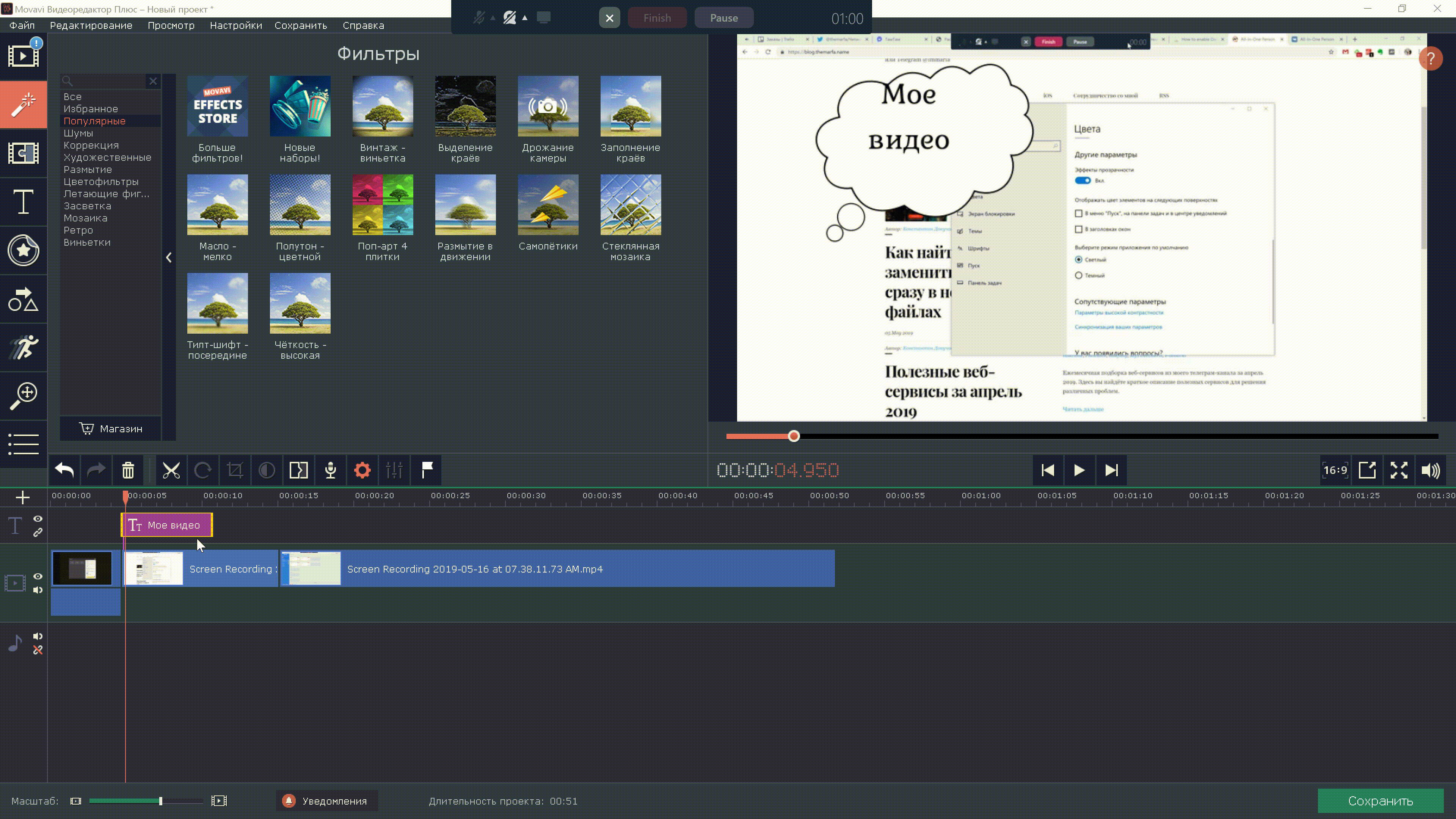 Также можно отдельно записать аудиотрек и добавить его к вашему ролику, добавить видео с веб-камеры и многое другое. Каждый из элементов будущего видео можно настроить с помощью множества инструментов, и создать тот ролик, который вам нужен.