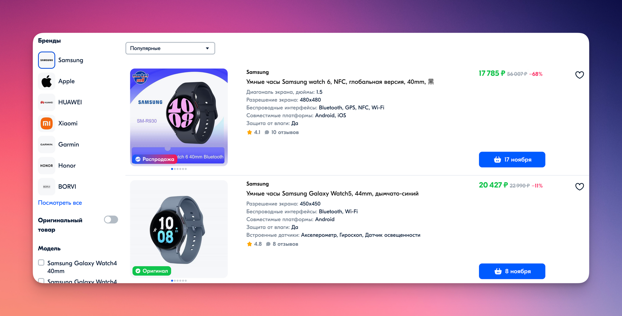 Последняя разработка от производителя — смарт-часы Galaxy Watch 5. Интернет-магазин ozon.ru — популярная площадка, на которой собраны все вариации модного девайса.