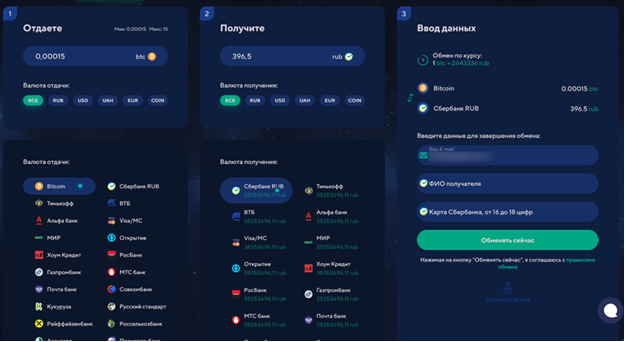 Из этой части поста вы узнаете про обменник Sova, которым многие успешно пользуются. Если вы хотите использовать другой обменник, данная инструкция будет подходить и для него.