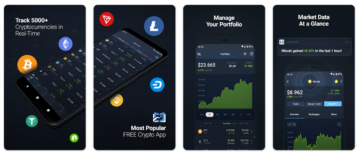 Приложение CoinCodex — это супермаркет статистики и обновлений всех криптовалют, которые вас интересуют. Хотите ли вы проверить последние изменения цен выбранной крипты или получать в реальном времени обновление списка победителей и проигравших на рынке, в любом случае CoinCodex поможет вам.