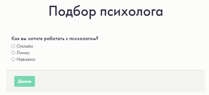 Если вам нужна помощь психолога, отнеситесь к выбору специалиста серьёзно. От уровня его эффективности напрямую зависит решение ваших проблем. Не каждый клиент сам точно понимает, какой специалист ему нужен, и может его выбрать. Поэтому сегодня и создаются такие сервисы, как Альтер, где на основе данных клиента можно выбрать профессионала не просто по его желаниям, а по научному алгоритму. Новые посетители получают бонус от сервиса — скидку 20% на первую сессию по коду themarfa023. Код действует до 31.12.2023.