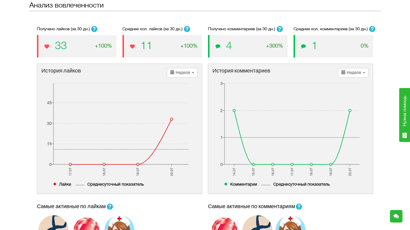 Помимо этого, предоставляются детальные анализы ЦА для успешного развития и продвижения вашей страницы.