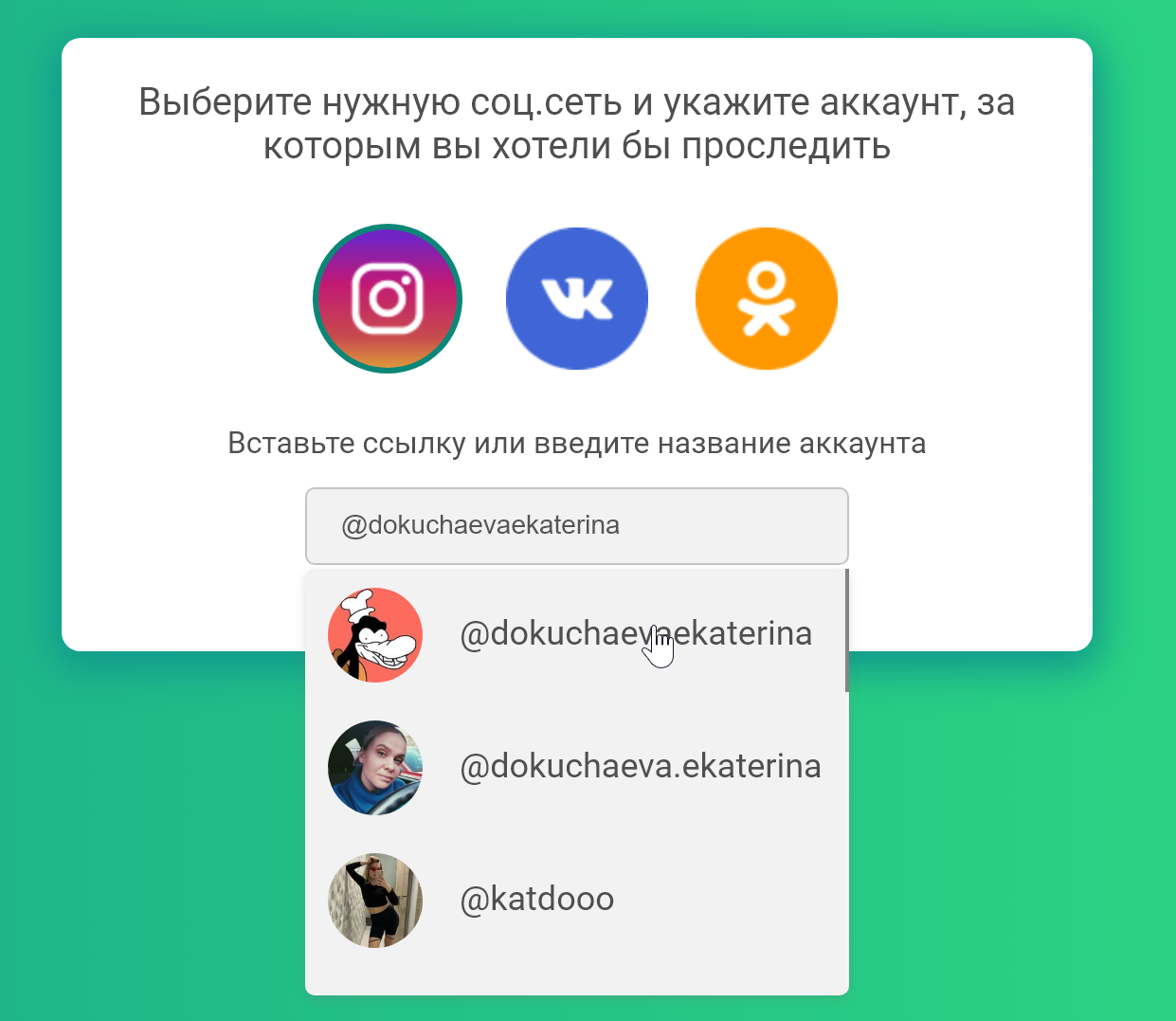 - наблюдения за своими акками в Instagram;