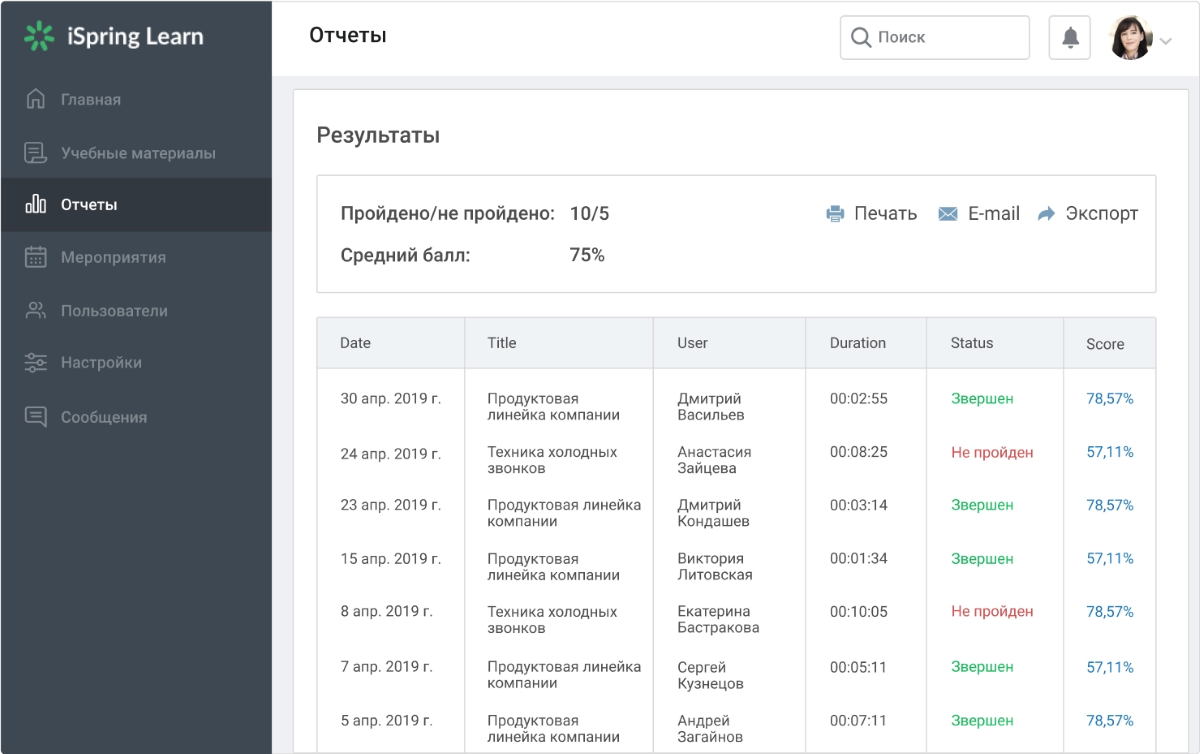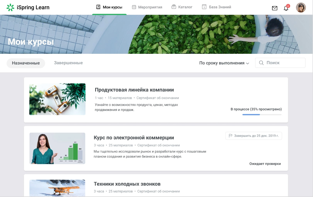 Примером такой СДО может быть iSpring Learn.