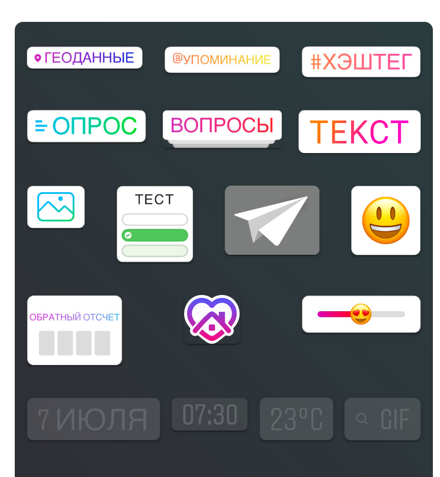 Набор стикеров, к сожалению, ограничен тем, что есть в SMMplanner. Но список постоянно растёт.