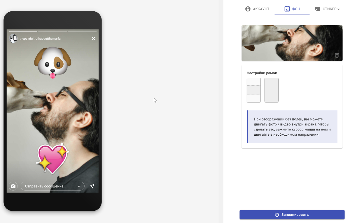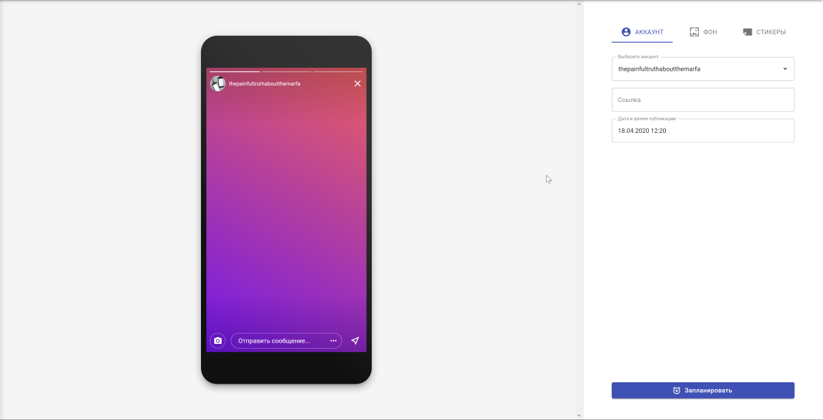 Если вы подключили Instagram, то в сервисе появляется возможность планировать истории. Супер крутая штука, которая делает именно то, что вы ожидаете.
