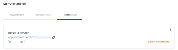 Чтобы не создавать каждый раз одно и то же собрание с одними и теми же людьми, можно воспользоваться так называемой постоянной комнатой.