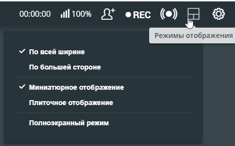 Во время собрания можно выбрать один из доступных режимов отображения. Можно одновременно отобразить до 20 видео на экране или переключиться в активный режим докладчика.