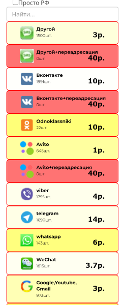 Ну и в конце остаётся выбрать сервис, для которого нужно получить СМС. Стоимость аренды номера зависит от сервиса и типа получения сообщения. Для российского региона есть номера стоимостью от 1 рубля и до 40.