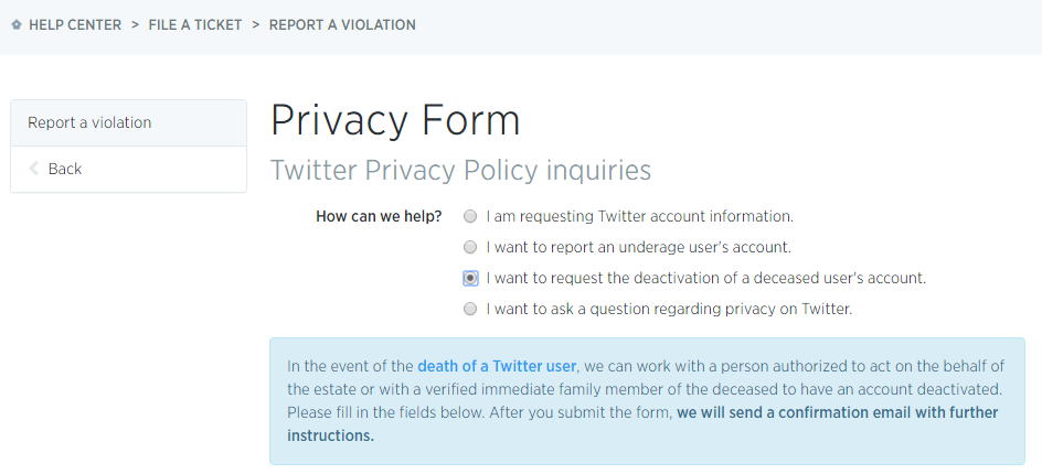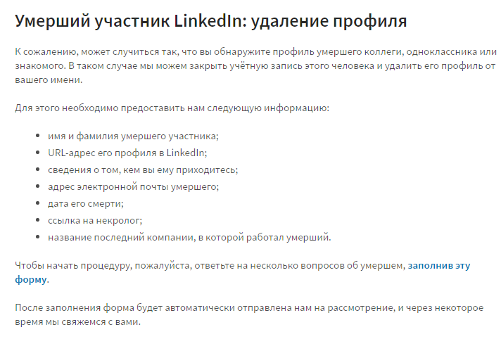 На LinkedIn родственникам придётся заполнить специальную форму: