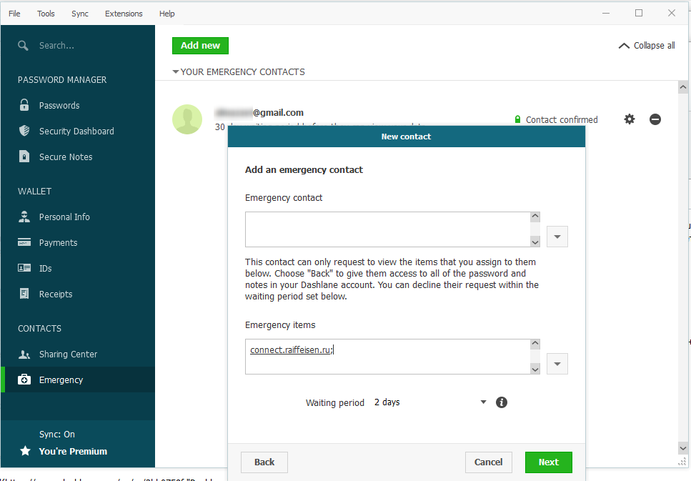 В сервисе Dashlane в разделе «Emergency» вы можете настроить автоотправку всех или некоторых паролей доверенным контактам. Отправка осуществляется в случае вашей неактивности в течение определённого срока.