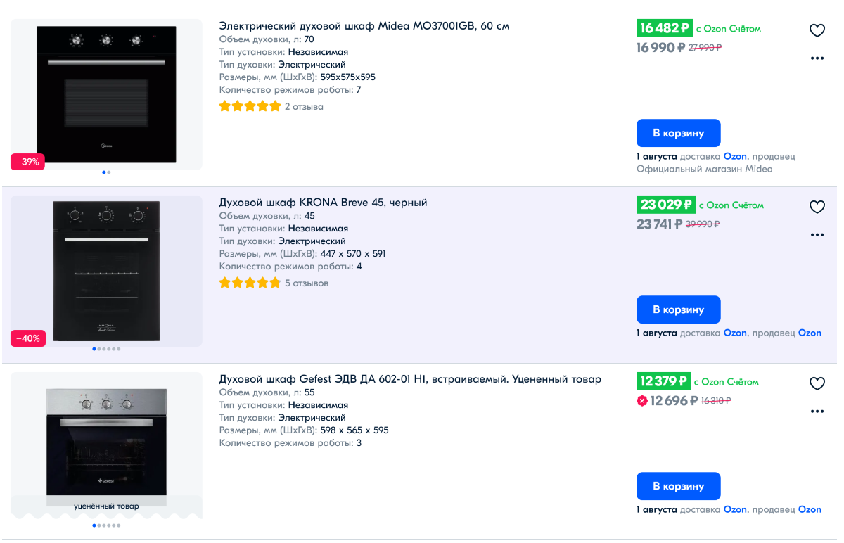 Классная кухонная техника превращает готовку в удовольствие. Духовой шкаф, микроволновка, воздухоочиститель — обязательные элементы современной кухни. Интернет-магазин Оzon предлагает качественные модели проверенных брендов по выгодным ценам.