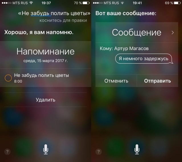 Большое количество подобных ошибок может вывести из себя, но если использовать Siri, например, для установки напоминаний или отправки сообщений, то это уже не так критично. Нельзя не отметить, как система понимает контакты: справляется как с простыми именами, так и со сложными. Незаменимая вещь при дефиците времени.