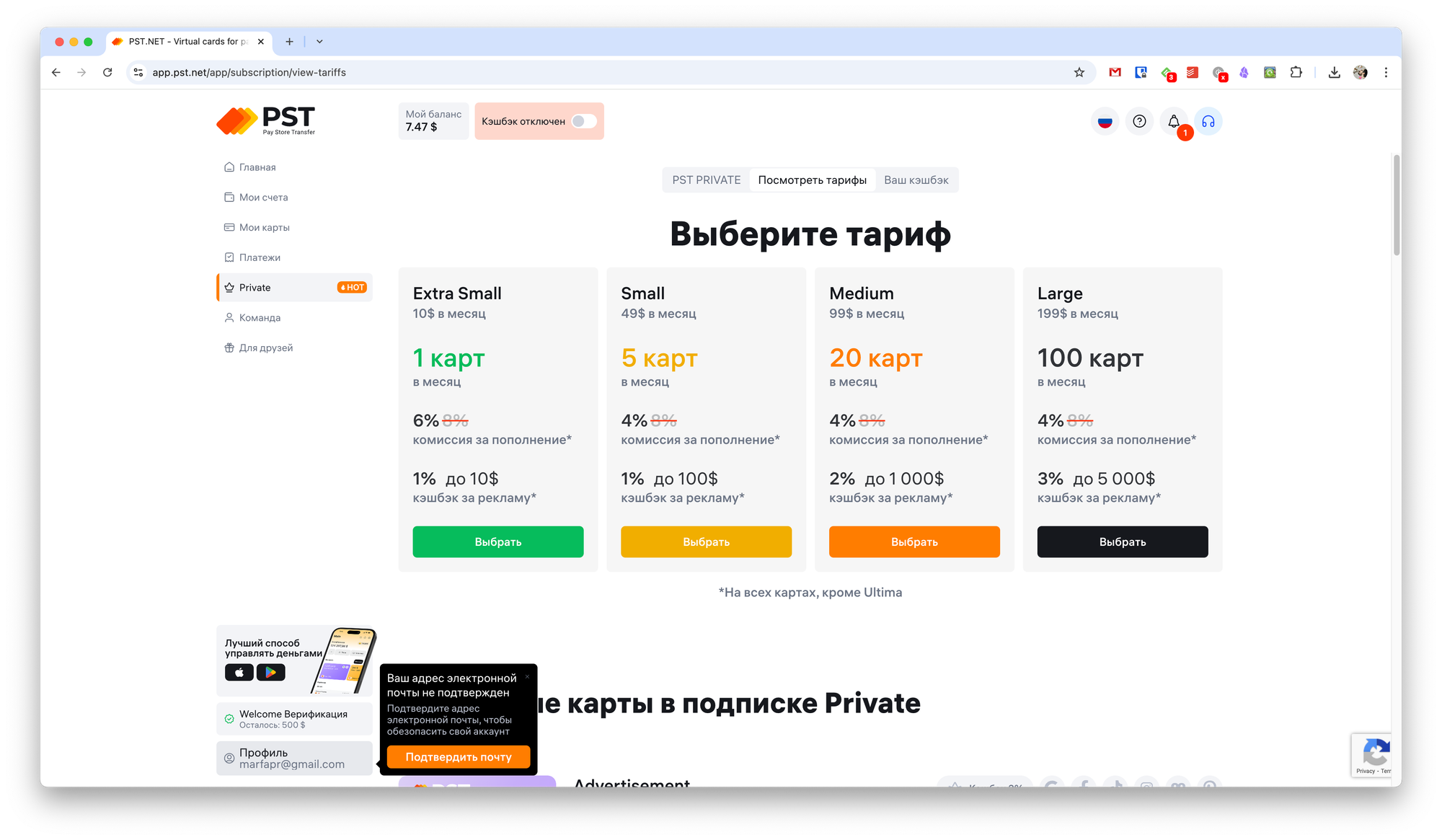 - Доступно до 100 бесплатных карт в месяц в рамках PST Private.