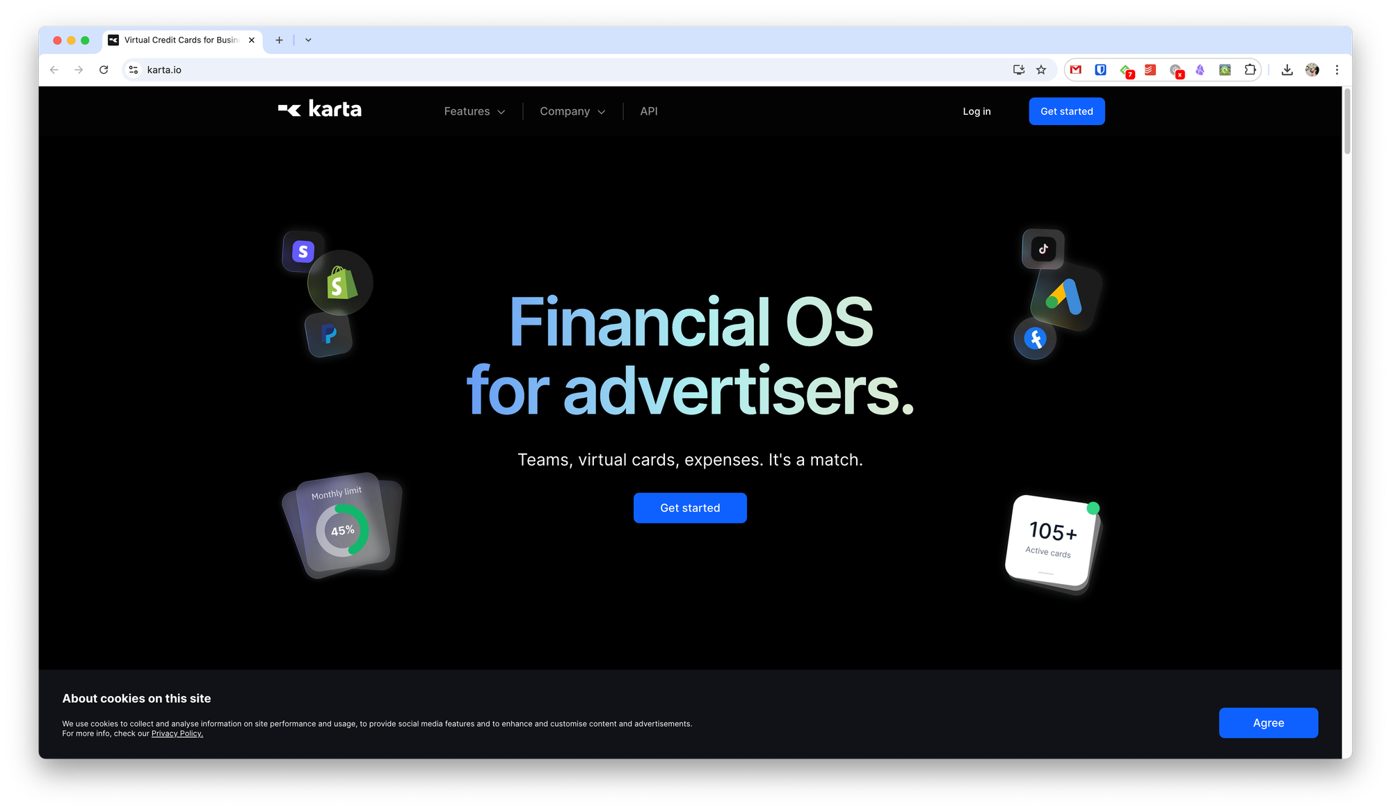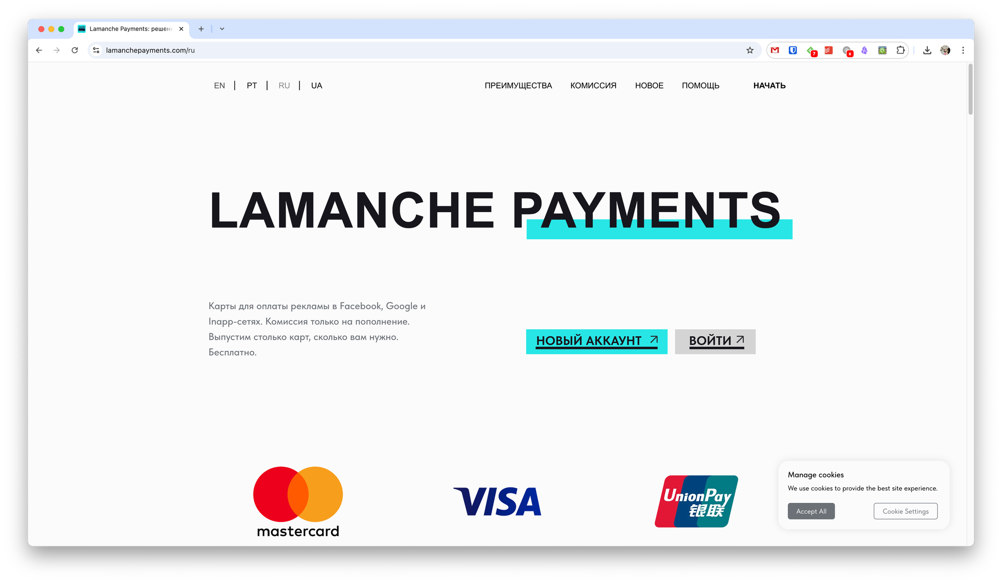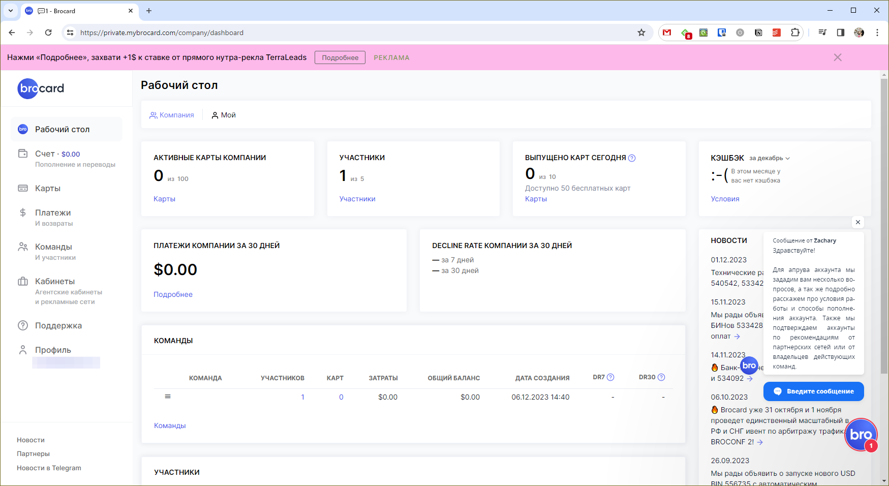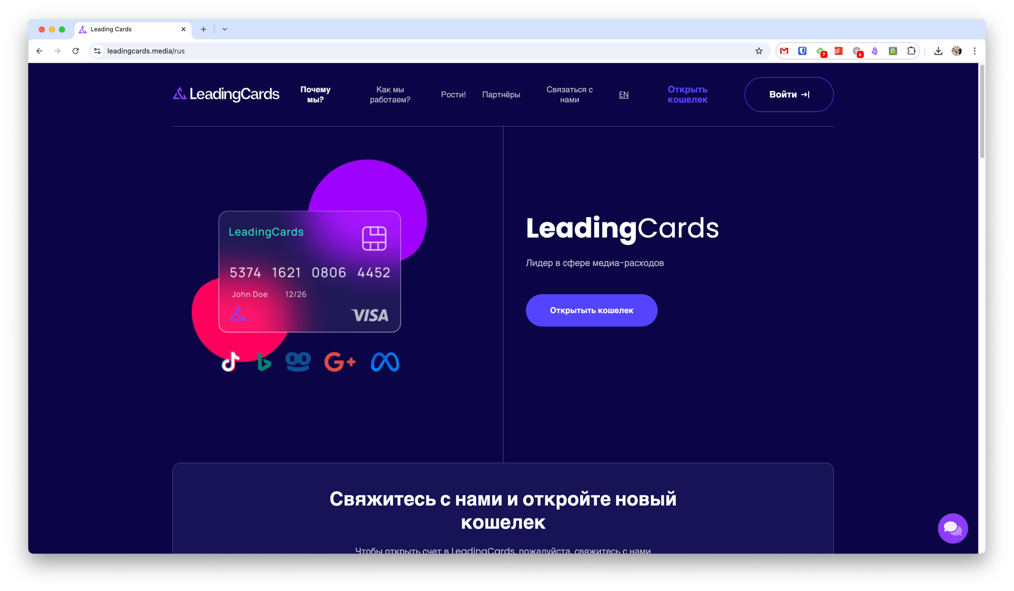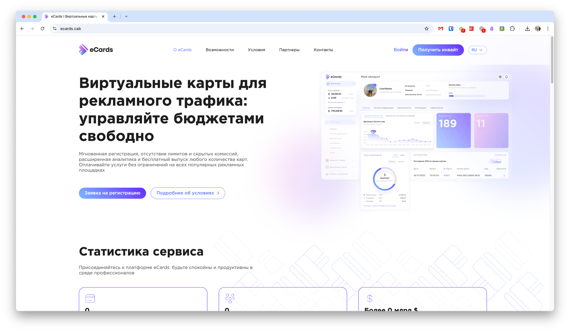 Ещё один сервис, который подойдёт для работы в крупных командах. Кроме работы с рекламой, есть возможность выпускать карты для обычной оплаты товаров.