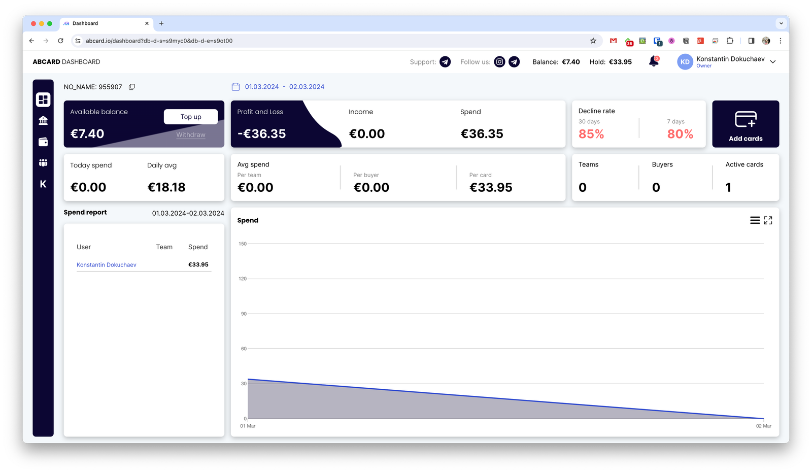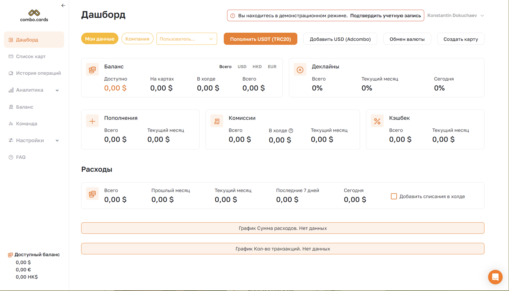 - Нет комиссий за транзакции, деклайны, вывод с карт, возвраты и вывод средств с платформы.