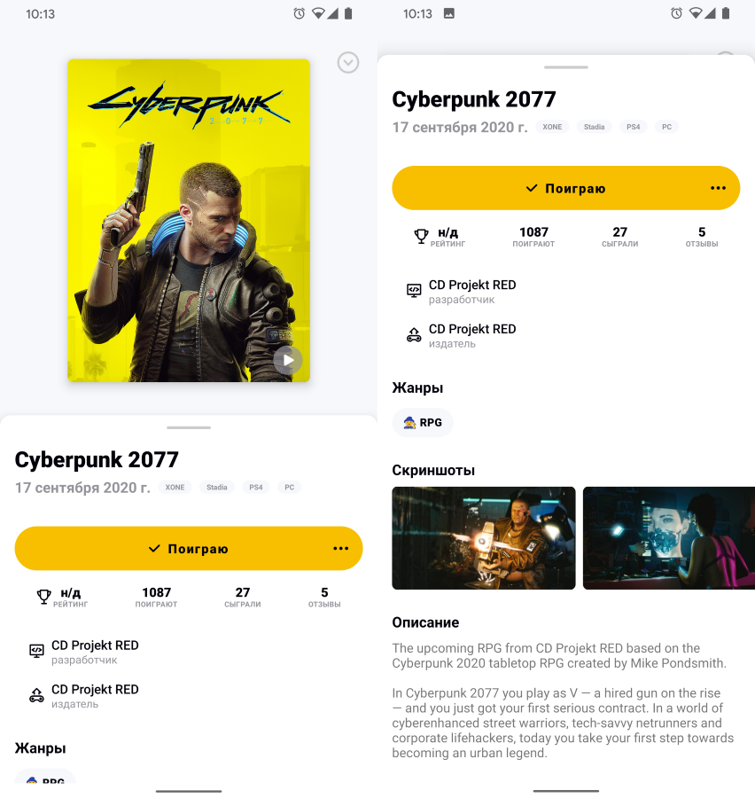 В разделе ожидаемых игр, как и в остальных, при тапе на карточке тайтла открывается сводная информация по нему.