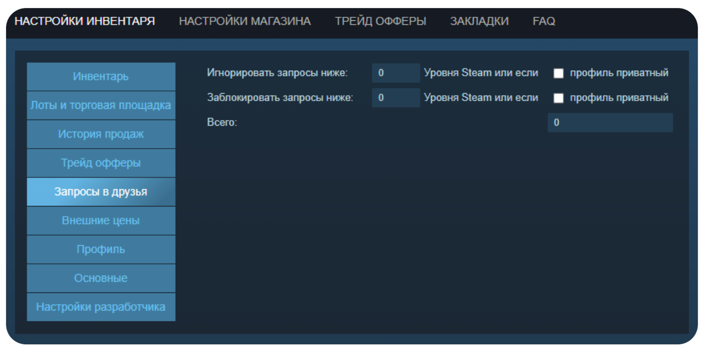 Автоматическая блокировка заявок — пользователи с низким уровнем Steam или закрытым профилем будут заблокированы при попытке добавления в друзья.