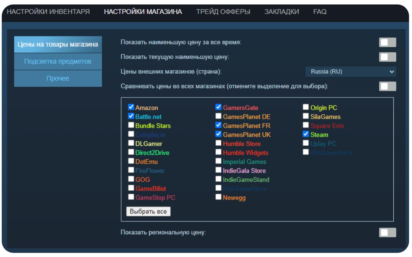 Функции, отвечающие за отображение минимальной цены за всё время, текущей минимальной стоимости, информации из сторонних магазинов и сравнение цен, у меня не работают. Я проверял на разных аккаунтах, браузерах и устройствах, обращался в поддержку. Если проблема будет решена, я обновлю материал.