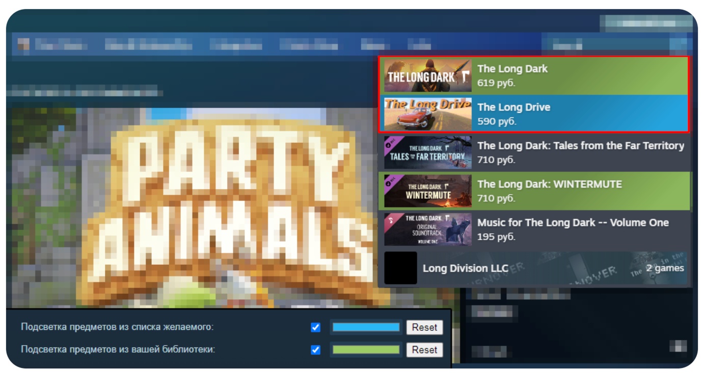 Подсветка работает для игр, добавленных в список желаемого, и игр из библиотеки. Оба способа помогают быстрее ориентироваться при просмотре каталога.