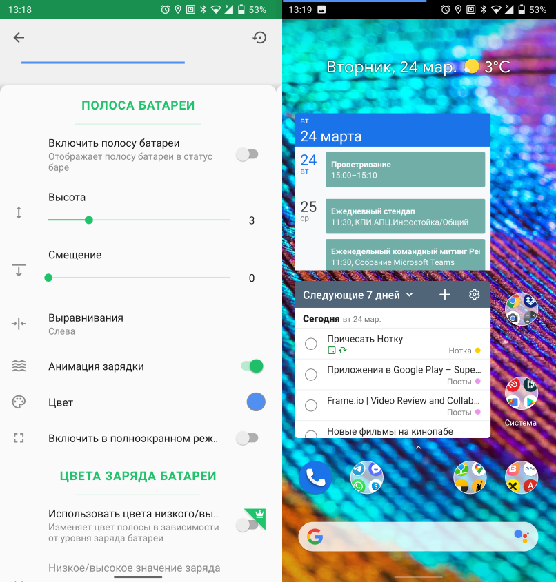 Если вам не нравится дефолтное отображение уровня заряда батареи, его можно заменить на полоску в статусной строке.
