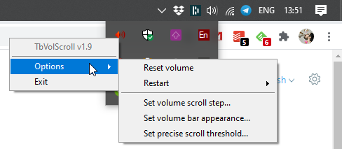 TbVolScroll добавляет возможность изменения уровня громкости простым скроллом при наведении на Панель управления.