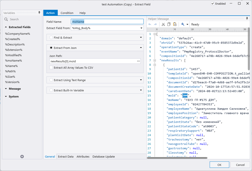 Не то чтобы нужно действительно уметь программировать. Просто ThinkAutomation не предлагает никакого визуального редактора в стиле «тык» на этом поле и сделать эту крутую штуку. Вам потребуется выбрать необходимый набор действий и в каждом из них вручную указать, что нужно извлечь и в каком формате.