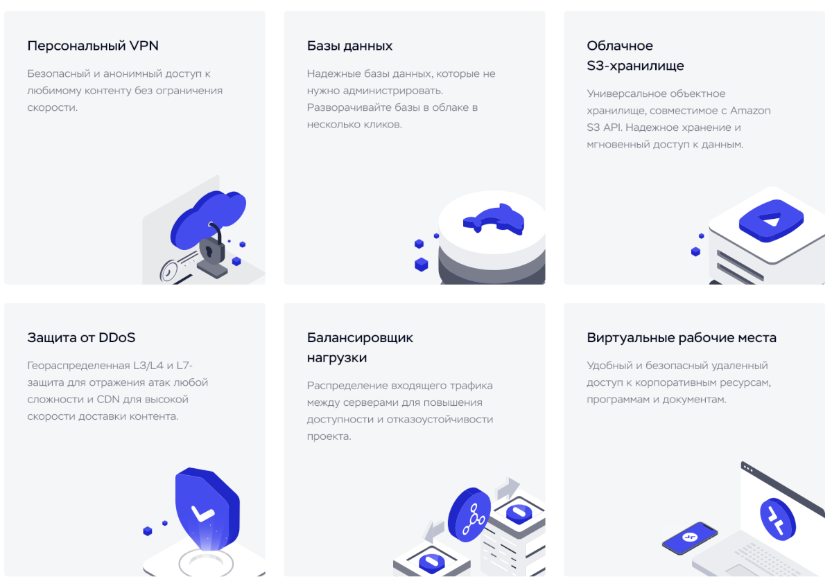 Timeweb Cloud предоставляет надёжную и безопасную облачную инфраструктуру, чтобы вы могли сосредоточиться на своём бизнесе, не беспокоясь о сложностях управления серверами. Компания также предлагает дополнительные услуги, такие как хранилище S3 и облачные базы данных DBaaS.