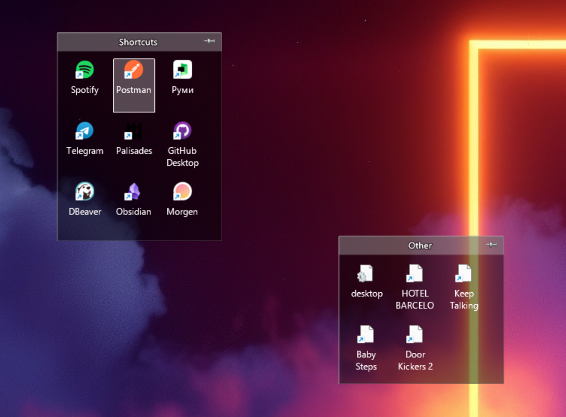 Fences — удобное приложение для организации рабочего пространства. С его помощью можно создавать специальные зоны на рабочем столе, в которых будут храниться файлы, папки и ярлыки согласно заданным правилам. Правда, за это придётся заплатить денег. Или можно воспользоваться бесплатными аналогами.