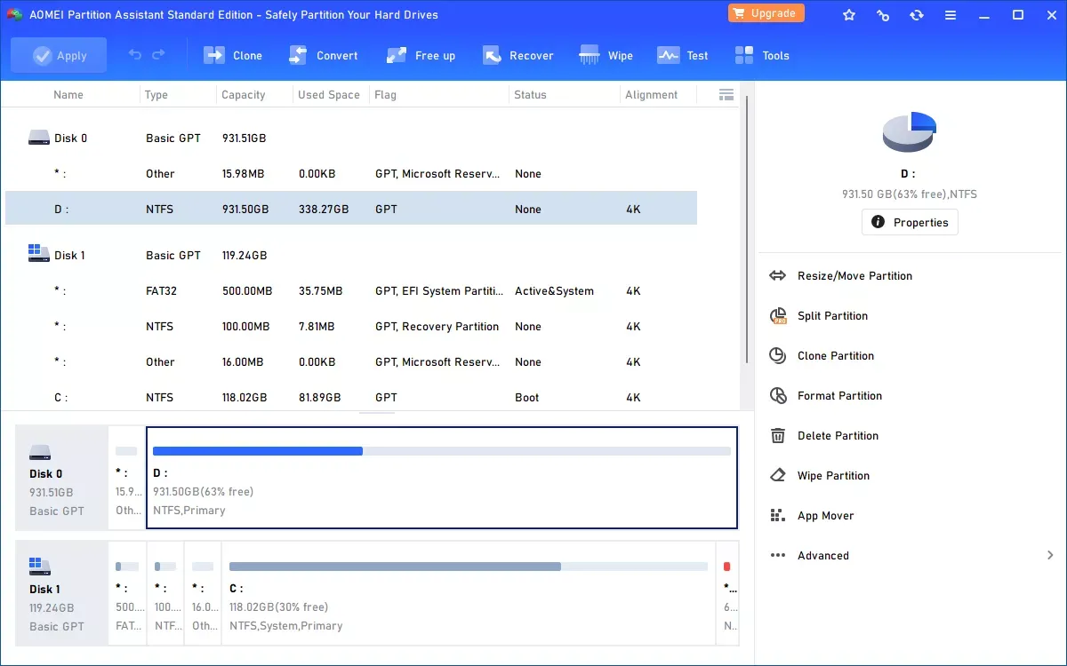 AOMEI Partition Assistant Standard Edition предлагает гораздо больше доступных опций (включая спрятанные в меню), чем многие бесплатные инструменты для создания разделов, но пусть это вас не отпугивает.