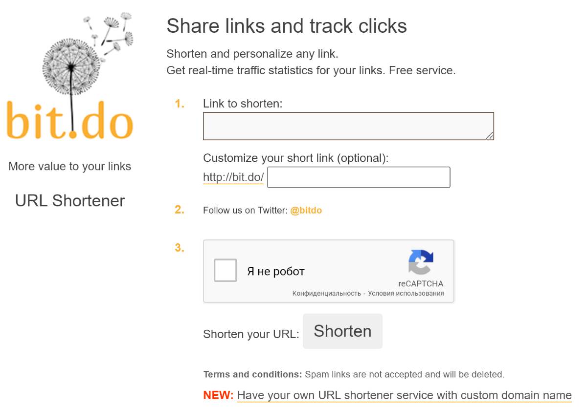 Пожалуй, самый популярный и простой сокращатель ссылок. Для использования базовых возможностей не нужно прилагать никаких усилий, даже регистрация не потребуется. Есть возможность работать с сервисом из панели инструментов вашего браузера.