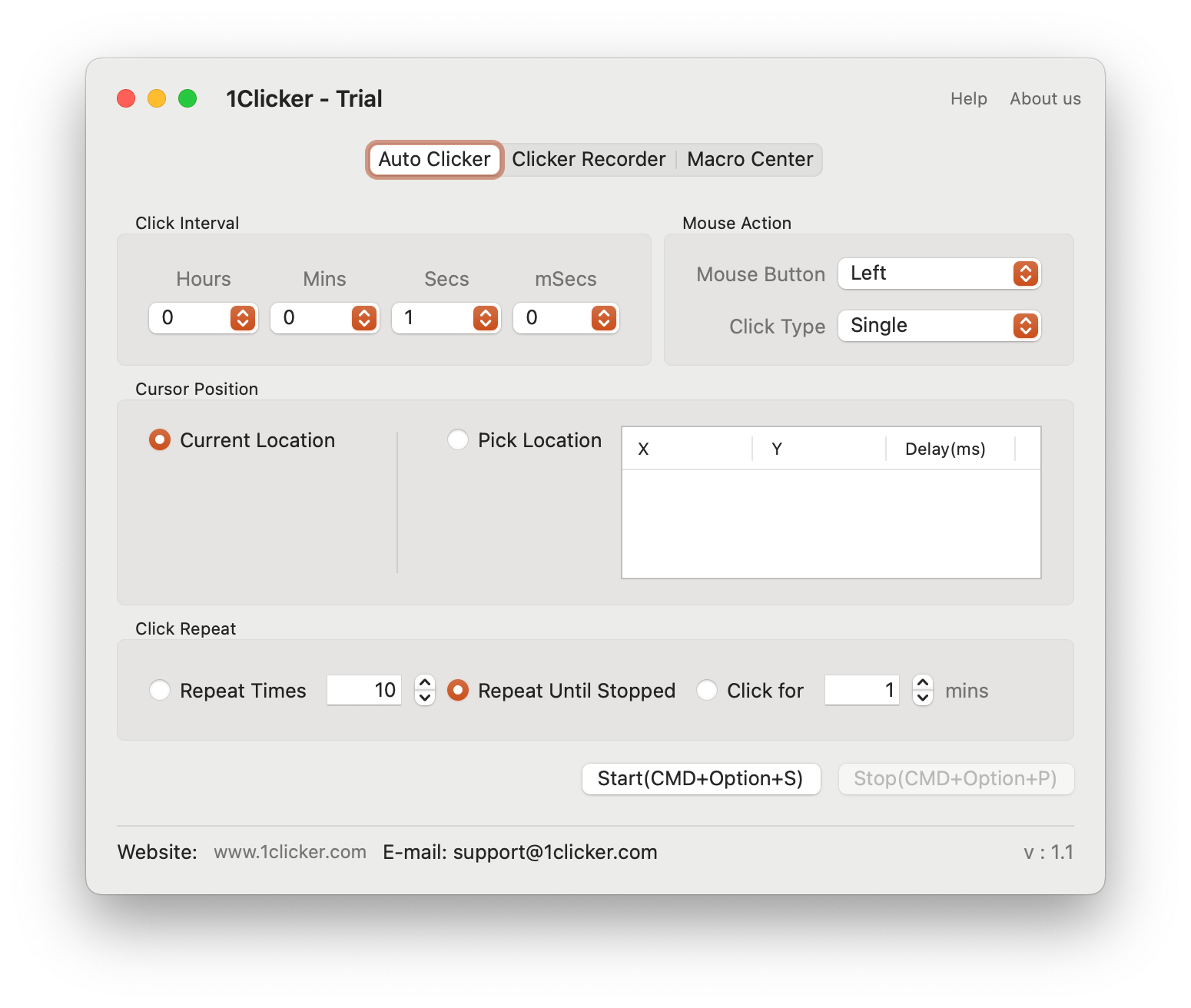 Первое, что меня напрягло в этом автокликере, — надпись Trial в заголовке окна. Однако ни в приложении, ни на сайте разработчика нигде не указана стоимость и нет страницы оплаты.
