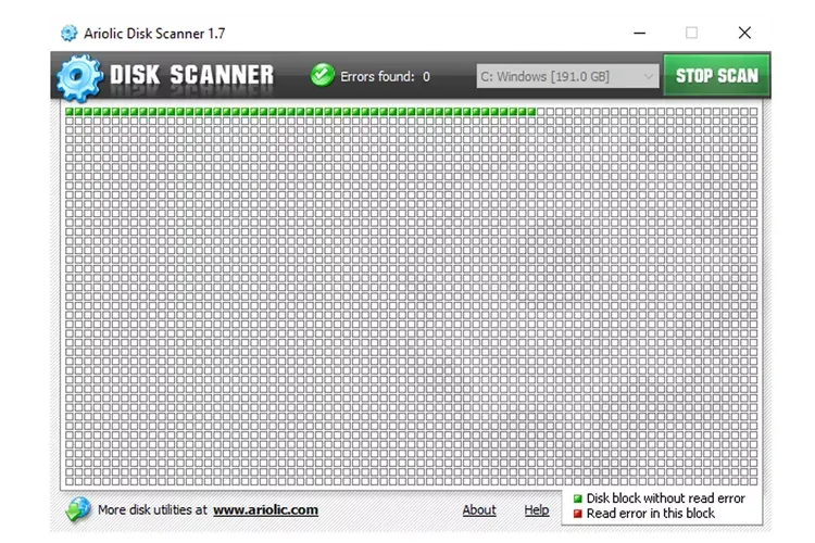 Как и Macrorit Disk Scanner, этот тестер просто сканирует жёсткий диск на предмет повреждённых секторов. ПО обладает минималистичным интерфейсом — всего одна кнопка, которая запускает сканирование.