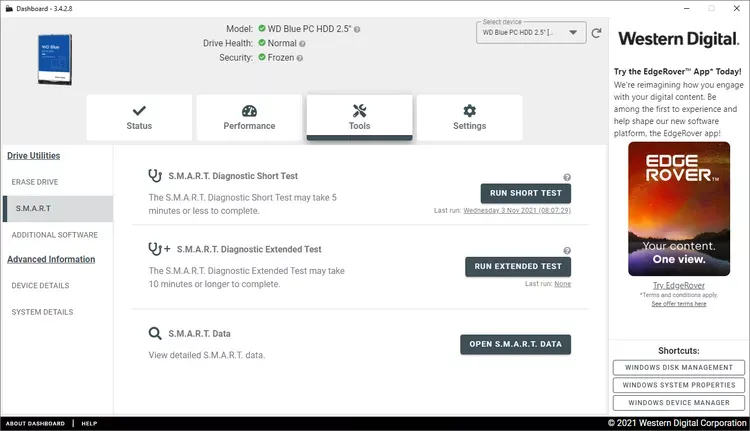 Western Digital Dashboard — софт для Windows, тестирующий жёсткий диск.